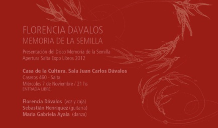 Se presento el 5 de Noviembre (vale anunciarlo, aunque haya ya pasado, pues nos llego un poco después) la producción de Florencia Davalos, “memoria de la semilla”